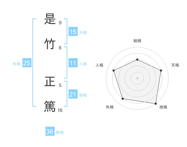 是竹 正篤さんを姓名の画数から五運を鑑定