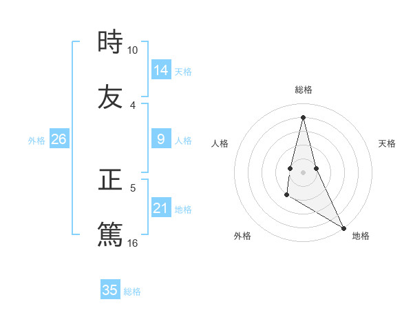 時友 正篤さんの総格は35画の4点!