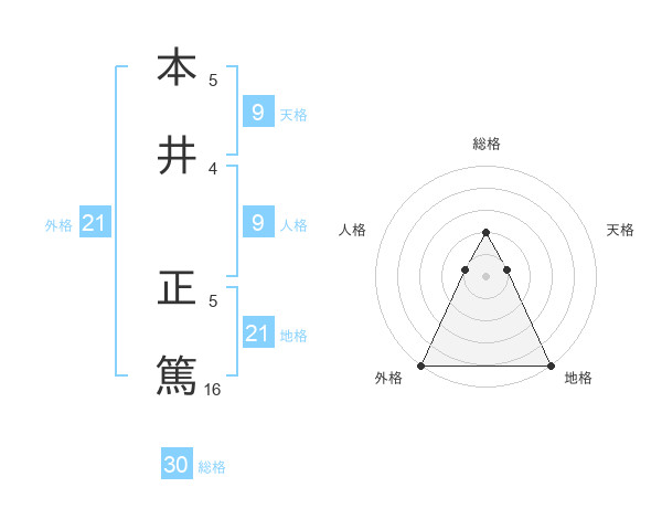 本井 正篤さんの外格は21画の5点!