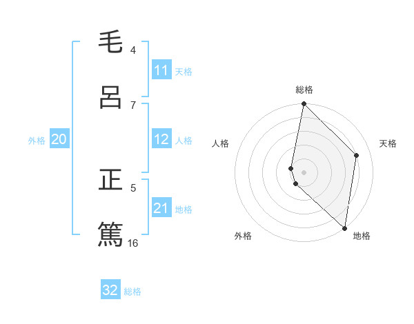 毛呂 正篤さんの総格は32画の5点!