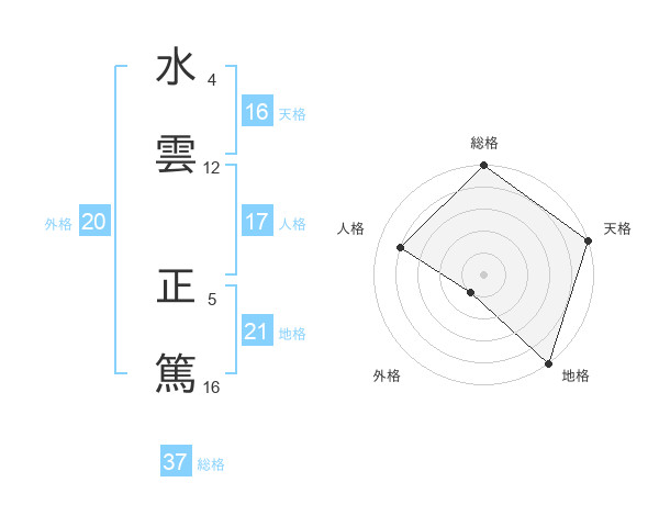 水雲 正篤さんの総格は37画の5点!