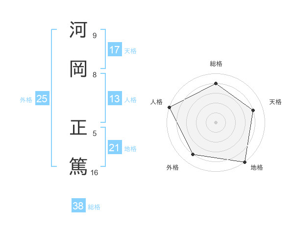 河岡 正篤さんの天格は17画の4点!