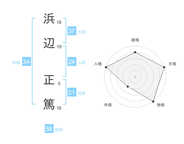 浜辺 正篤さんを姓名の画数から五運を鑑定