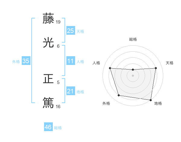 藤光 正篤さんを姓名の画数から五運を鑑定