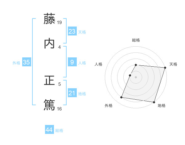 藤内 正篤さんの天格は23画の5点!
