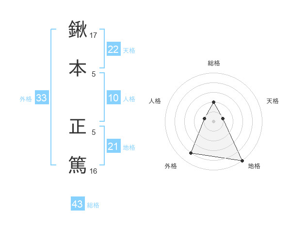 鍬本 正篤さんの天格は22画の1点!
