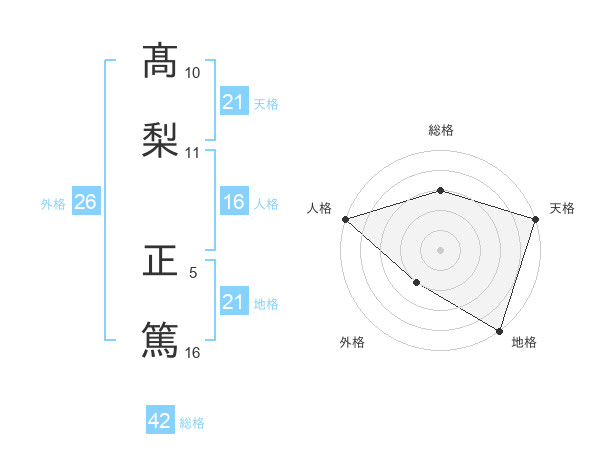髙梨 正篤さんの地格は21画の5点!