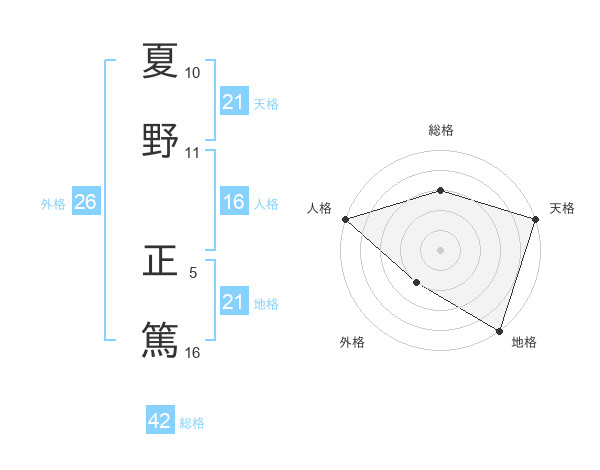 夏野 正篤さんを姓名の画数から五運を鑑定