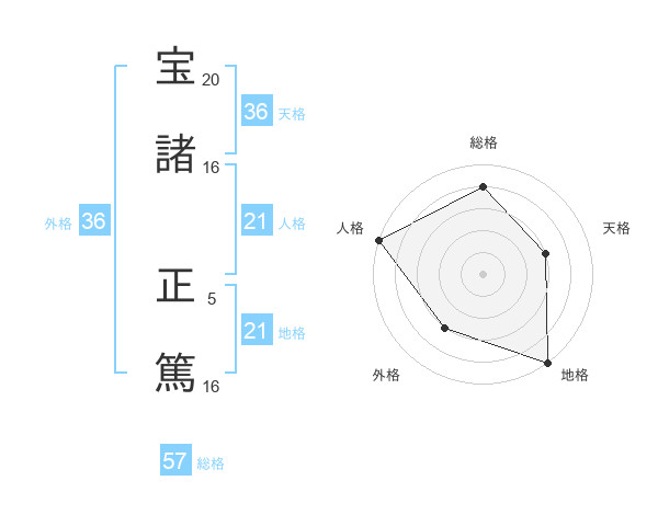 宝諸 正篤さんの総格は57画の4点!
