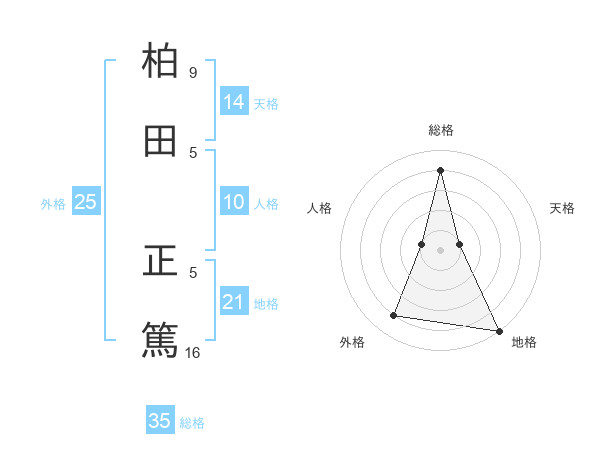 柏田 正篤さんの総格は35画の4点!