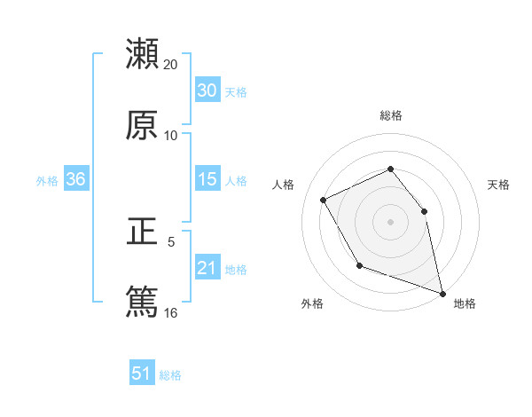 瀬原 正篤さんの総格は51画の3点!