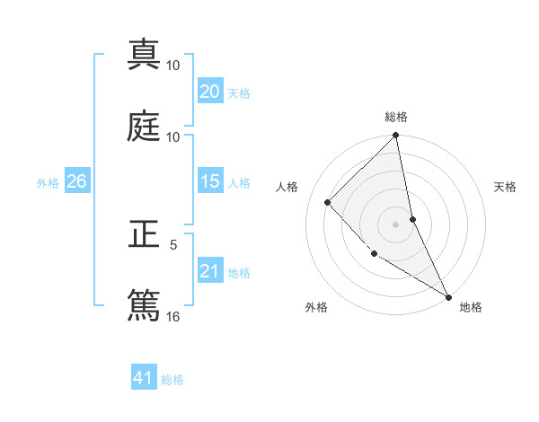 真庭 正篤さんの総格は41画の5点