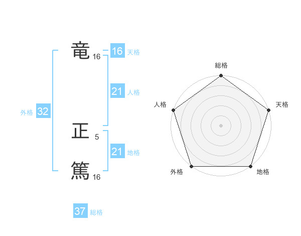 竜 正篤さんの総格は37画の5点!
