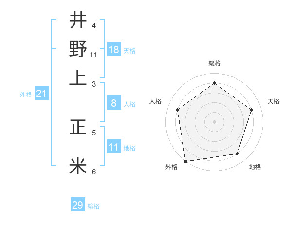 井野上 正米さんの総格は29画の4点!