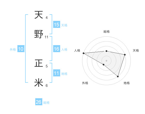 天野 正米さんの総格は26画の2点!