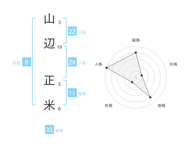 山辺 正米さんの総格は33画の4点!