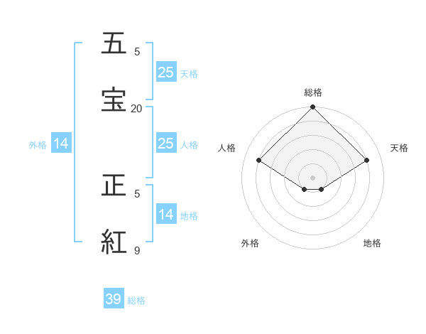 五宝 正紅さんを姓名の画数から五運を鑑定