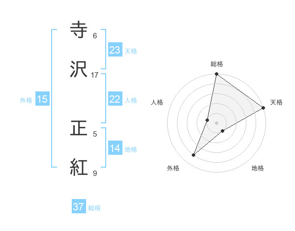 寺沢 正紅さんを姓名の画数から五運を鑑定