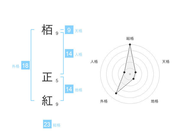栢 正紅さんの総格は23画の5点!