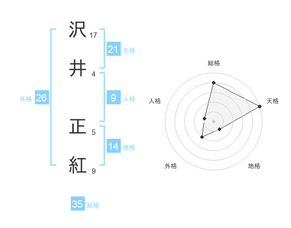 沢井 正紅さんを姓名の画数から五運を鑑定