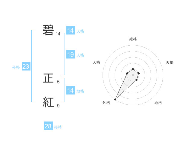 碧 正紅さんの外格は23画の5点!
