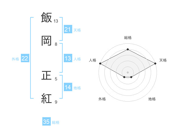 飯岡 正紅さんを姓名の画数から五運を鑑定
