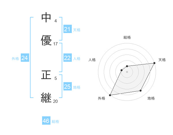 中優 正継さんの外格は24画の5点!