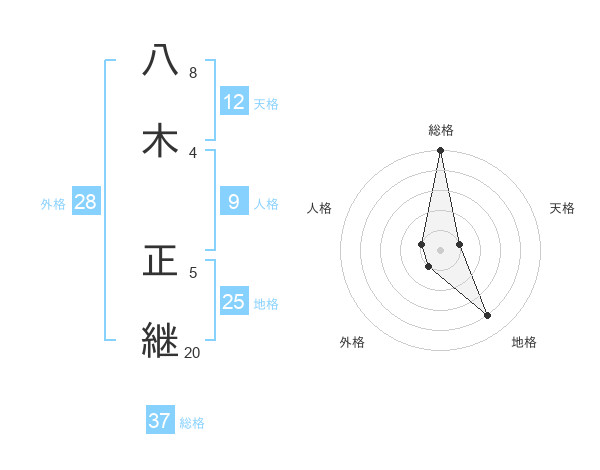 八木 正継さんの総格は37画の5点!