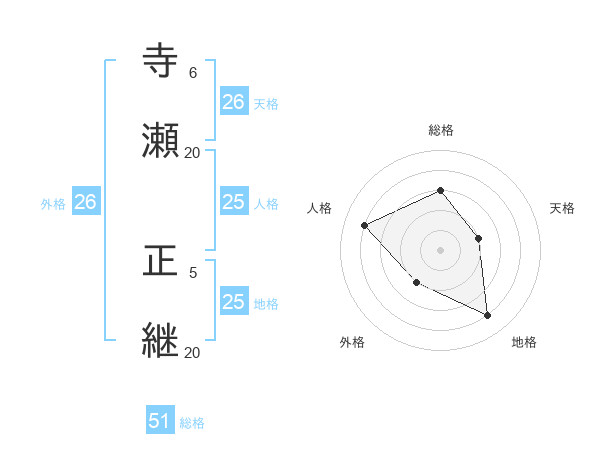 寺瀬 正継さんを姓名の画数から五運を鑑定