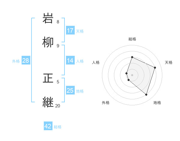 岩柳 正継さんを姓名の画数から五運を鑑定