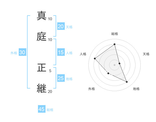 真庭 正継さんの天格は20画の1点!