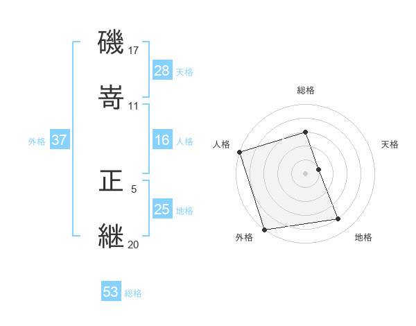 磯嵜 正継さんの外格は37画の5点!