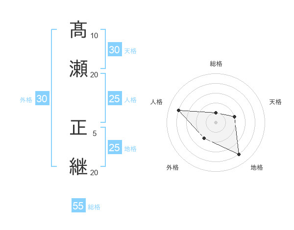 髙瀬 正継さんの総格は55画の1点!