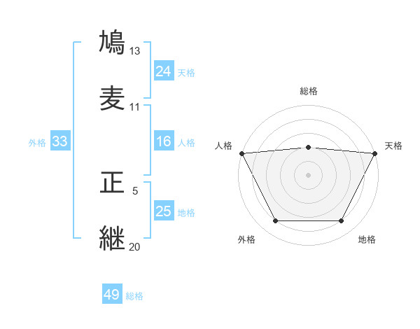 鳩麦 正継さんを姓名の画数から五運を鑑定