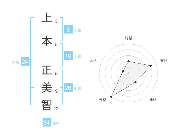 上本 正美智さんの天格は8画の4点!