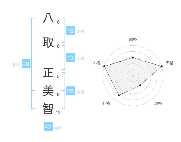 八取 正美智さんの天格は16画の5点!