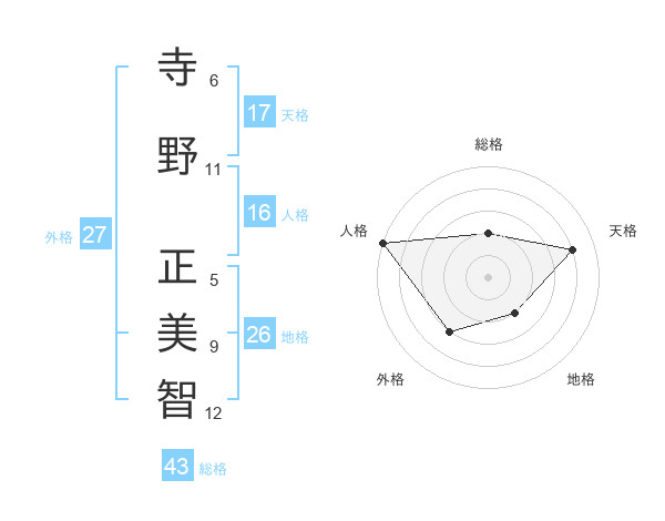 寺野 正美智さんの天格は17画の4点!