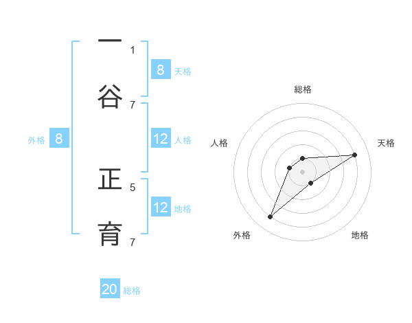 一谷 正育さんの総格は20画の1点!