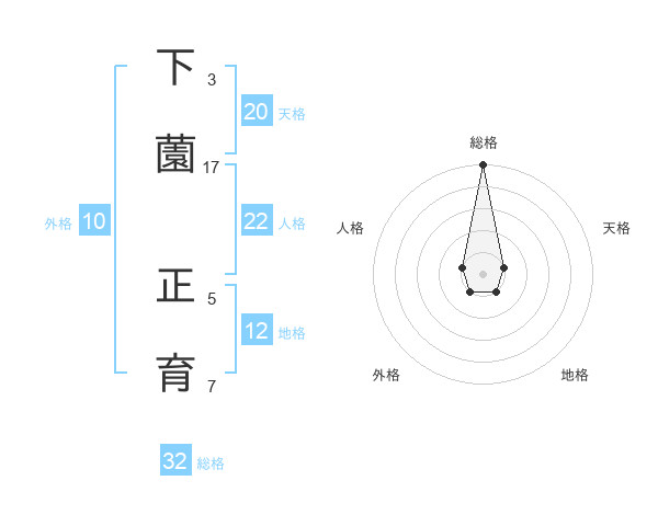 下薗 正育さんの総格は32画の5点!
