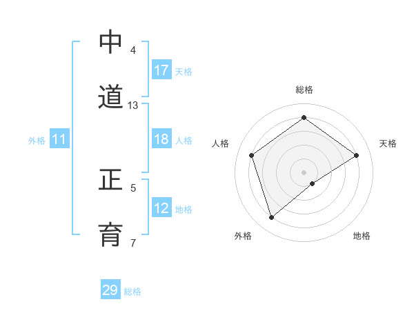 中道 正育さんの天格は17画の4点!