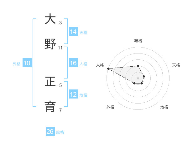 大野 正育さんの総格は26画の2点!