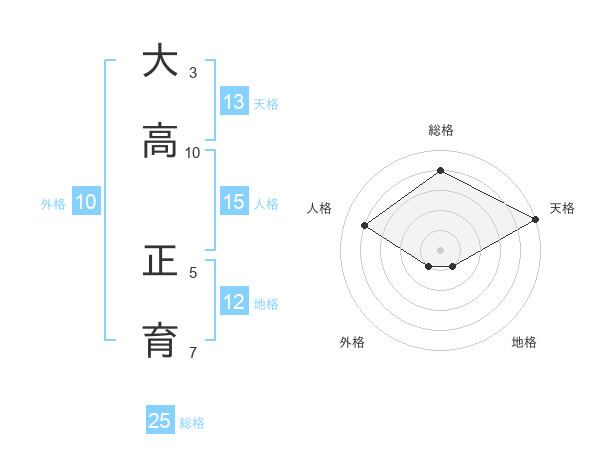 大高 正育さんの総格は25画の4点!