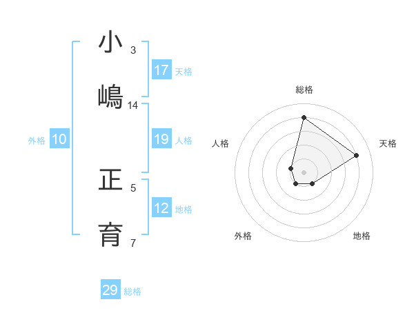小嶋 正育さんを姓名の画数から五運を鑑定