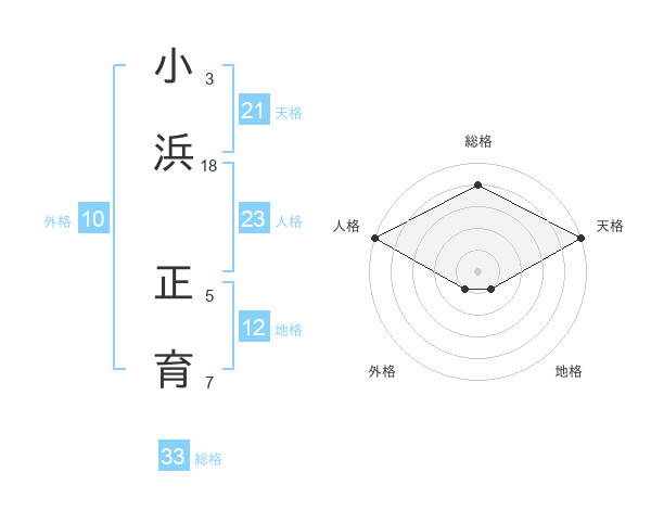 小浜 正育さんの天格は21画の5点!