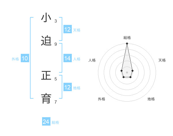 小迫 正育さんの総格は24画の5点!
