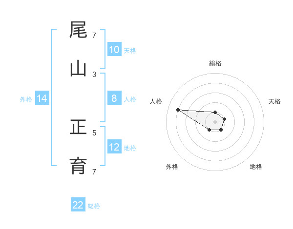 尾山 正育さんの総格は22画の1点!
