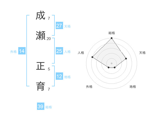 成瀬 正育さんを姓名の画数から五運を鑑定
