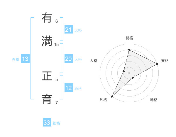 有満 正育さんの天格は21画の5点!