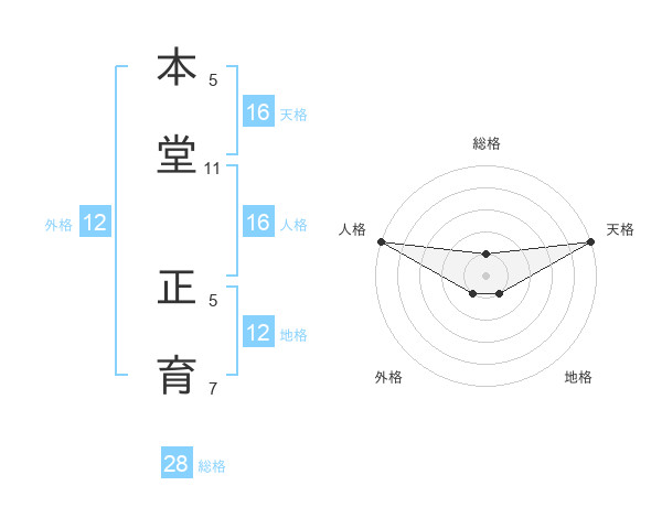 本堂 正育さんの天格は16画の5点!