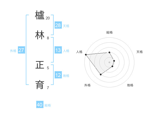 櫨林 正育さんの総格は40画の2点!